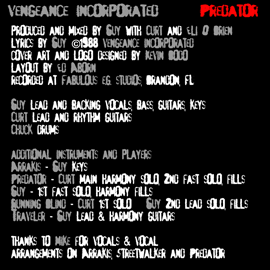 All in all, Predator didn’t come out too bad considering what we had to work with. There are some uncomfortable vocal moments for me though, looking back on it now, however. The same tour our bassist had quit, the lead vocalist had left shortly after, so I took over lead vocals as well.