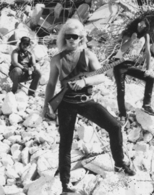 Guy and Curt were writing and recording prototypes of Vengeance originals with David before Chuck joined on a crappy Teac 4-track. Guy decided to start buying some serious recording equipment, with the aim of building a recording studio, rather than shelling out money for recording time, the money could be used to buy more equipment. That year Guy founded fabulous e.g. studios in Brandon with a Teac 8-track and began recording and producing local bands.
